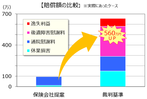 当事務所に依頼する一番のメリットは、弁護士に依頼すれば裁判基準で話し合いができるため賠償額の増額が期待できるという点です。